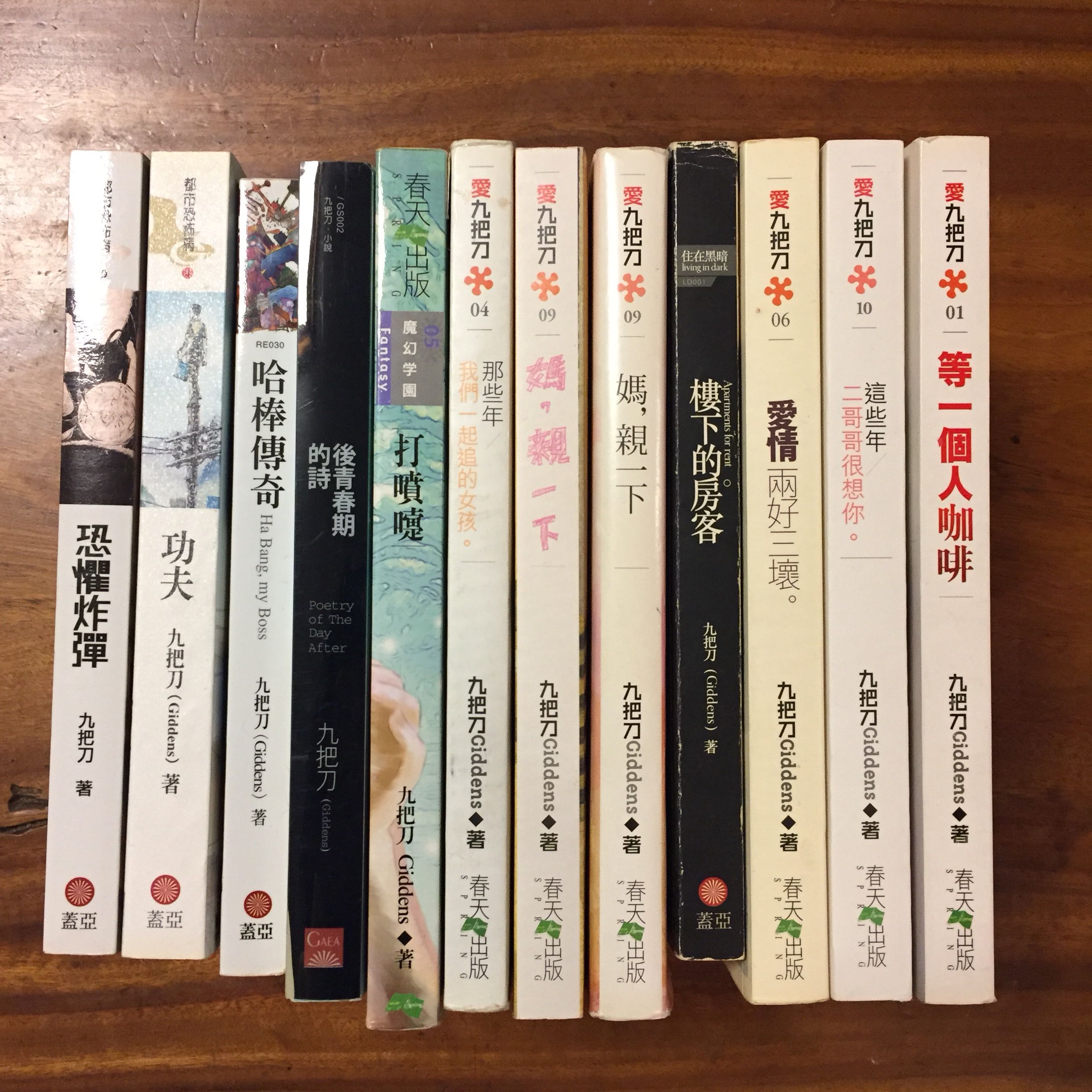 九把刀小说. 那些年我們一起追的女孩 殺手流離尋岸的花 愛情兩好三壞 樓下的房客 少林寺第八銅人 功夫 等一個人咖啡.