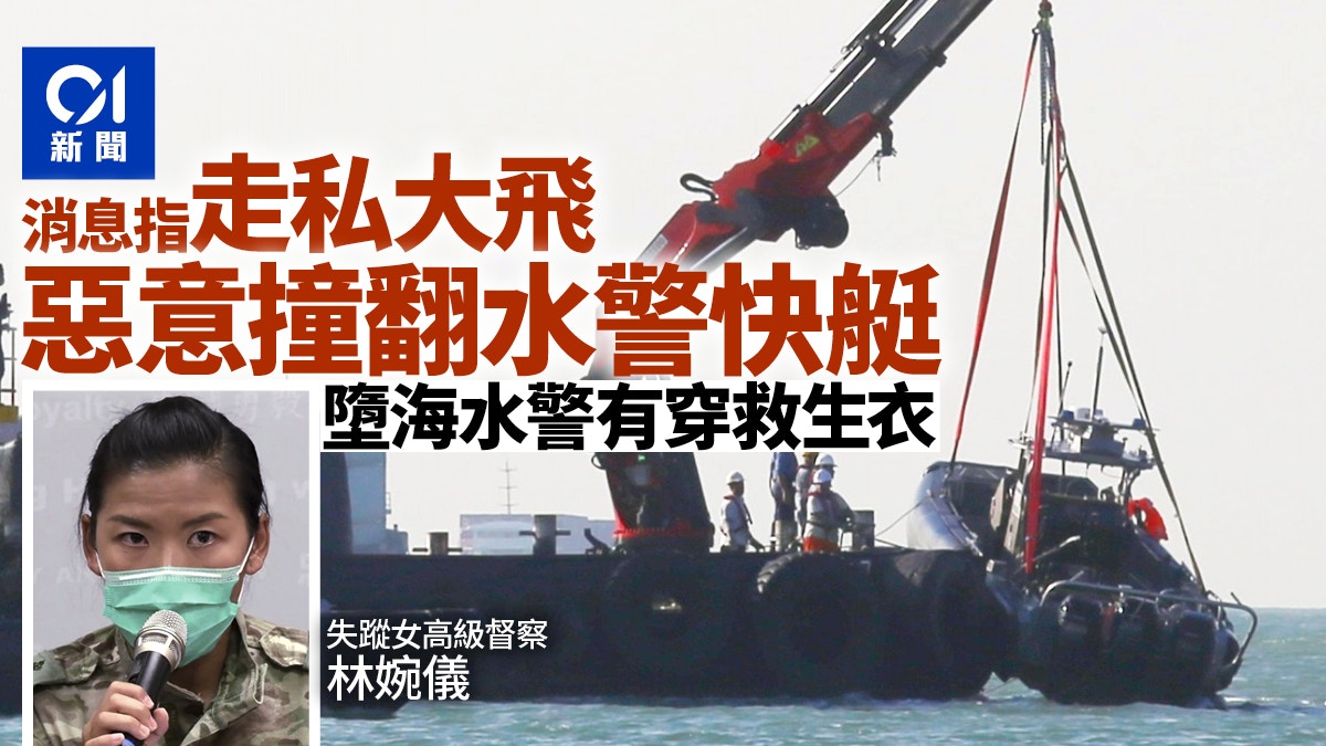 警方一艘水警巡邏艇於沙洲截查走私船隻時意外反艇一名女警墮海失蹤 據了解失蹤的女高級督察為小艇隊指揮官林婉儀隸屬水警西分區駐守昂船洲水警小艇警署過去搗破多宗走私案其中包括去年9月1日走私及殘酷對待動物案及同年8月的3700萬走私案當時林有份出席記招交代案情.