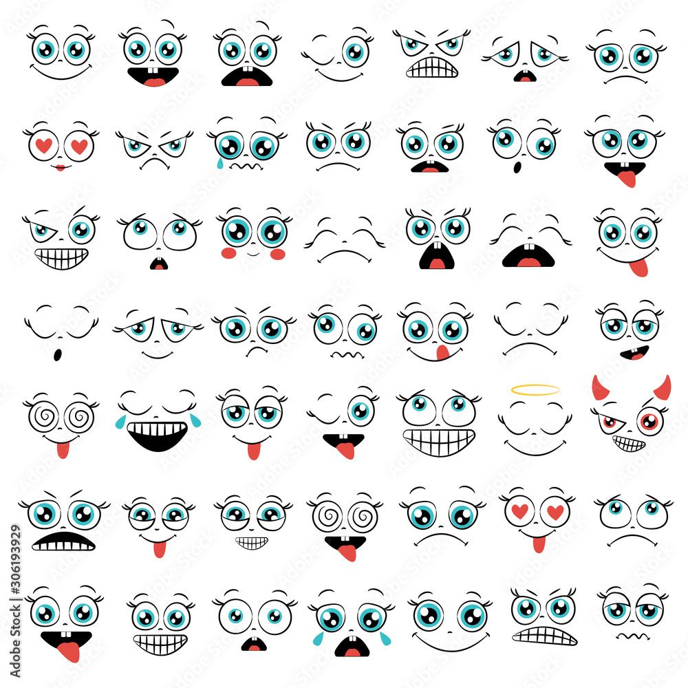Funny Cartoon Faces With Different Expressions Vector Clip Art Illustration With Simple Gradients Each On A Separate Layer Stock Vektorgrafik Adobe Stock